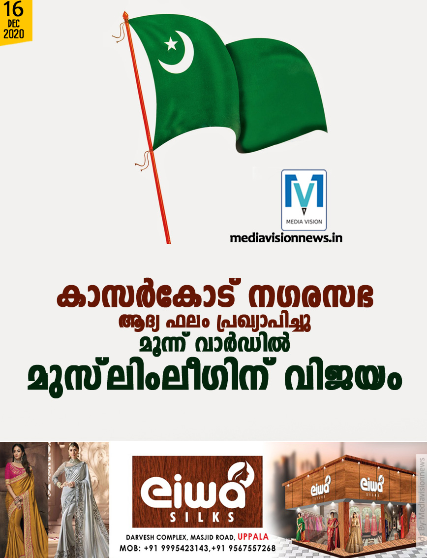 കാസര്‍കോട് നഗരസഭ ആദ്യ ഫലം പ്രഖ്യാപിച്ചു: മൂന്ന് വാര്‍ഡില്‍ മുസ്‌ലിംലീഗിന് വിജയം