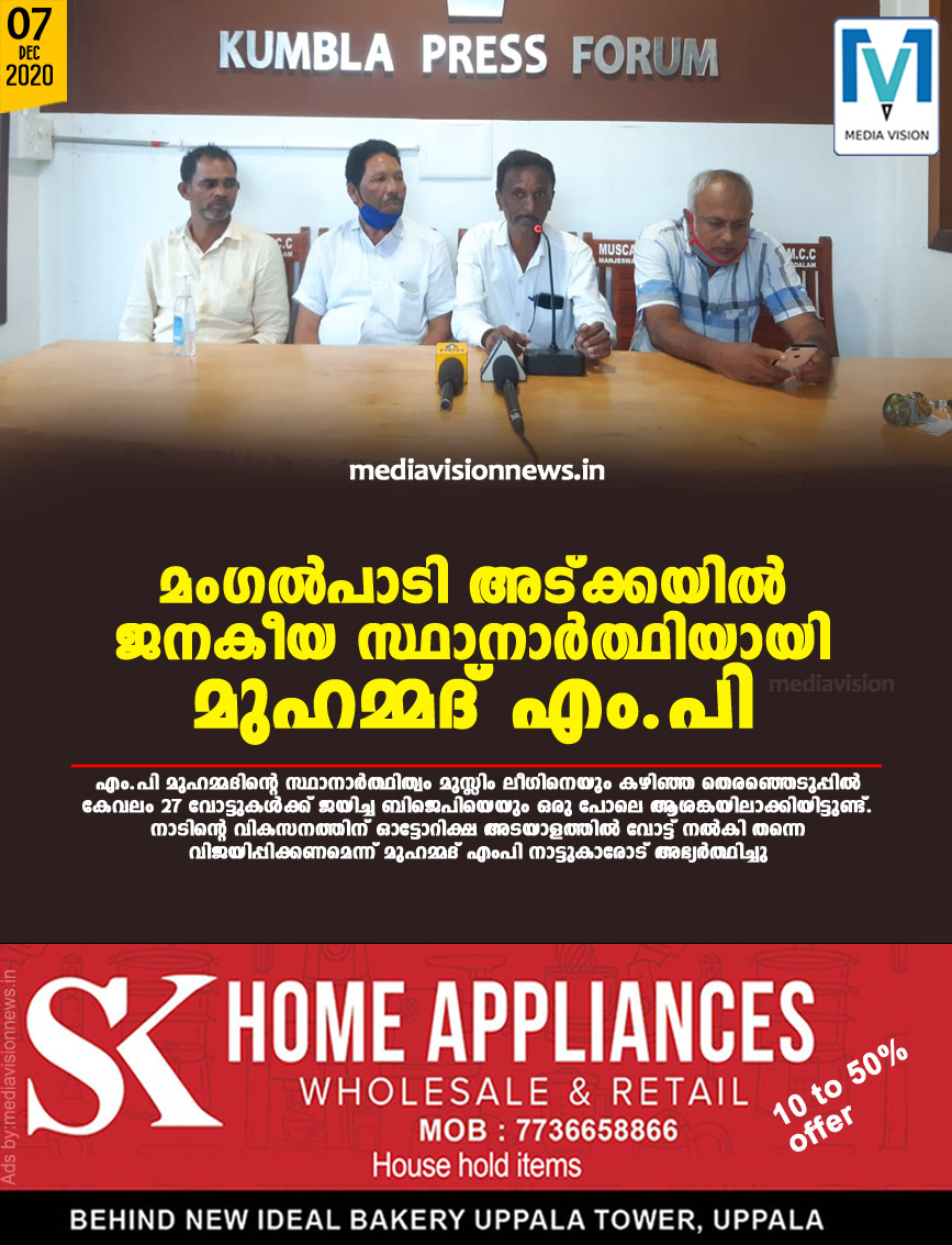 മംഗൽപാടി അട്ക്കയിൽ ജനകീയ സ്ഥാനാർത്ഥിയായി മുഹമ്മദ് എം.പി