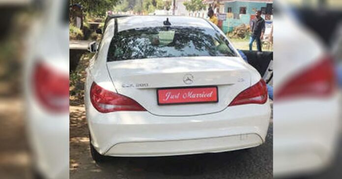 വിവാഹദിനത്തില്‍ കാറില്‍ നമ്പര്‍ പ്ലേറ്റിന് പകരം ജസ്റ്റ് മാരീഡ് ബോര്‍ഡ്: നവവരന് കൈയ്യോടെ പണി കൊടുത്ത് മോട്ടോര്‍വാഹന വകുപ്പ്