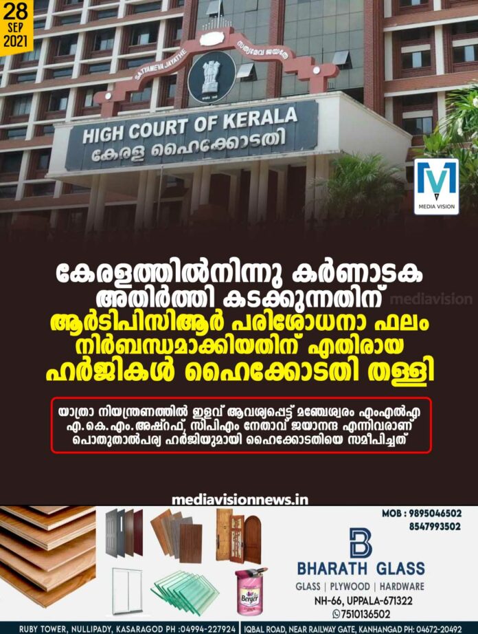 കൊച്ചി∙ കേരളത്തിൽനിന്നു കർണാടക അതിർത്തി കടക്കുന്നതിന് ആർടിപിസിആർ പരിശോധനാ ഫലം നിർബന്ധമാക്കിയതിന് എതിരായ ഹർജികൾ ഹൈക്കോടതി തള്ളി. കേരളാ ഹൈക്കോടതിയുടെ അധികാര പരിധിയിൽ വരുന്നതല്ല വിഷയമെന്നു വിലയിരുത്തിയാണ് കോടതി നടപടി. നിയന്ത്രണങ്ങളിൽ കേരള ഹൈക്കോടതിക്ക് ഇടപെടാനാവില്ലെന്ന കർണാടക സർക്കാരിന്റെ വാദം ചീഫ് ജസ്റ്റിസ് അധ്യക്ഷനായ ബെഞ്ച് അംഗീകരിച്ചു.