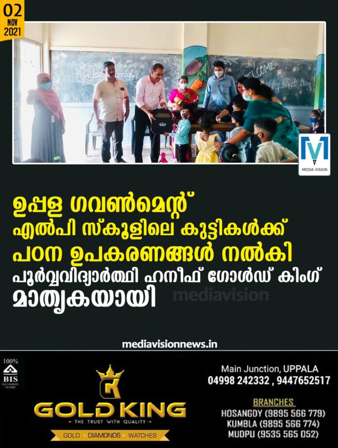 ഉപ്പള ഗവൺമെന്റ് എൽപി സ്‌കൂളിലെ കുട്ടികൾക്കു പഠന ഉപകരണങ്ങൾ നൽകി പൂർവ്വവിദ്യാർത്ഥി ഹനീഫ് ഗോൾഡ് കിംഗ്‌ മാതൃകയായി