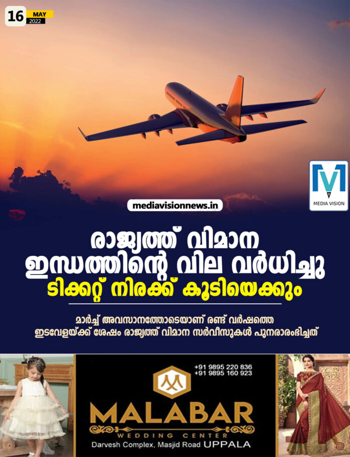 രാജ്യത്ത് വിമാന ഇന്ധത്തിന്റെ വില വർധിച്ചു; ടിക്കറ്റ് നിരക്ക് കൂടിയെക്കും