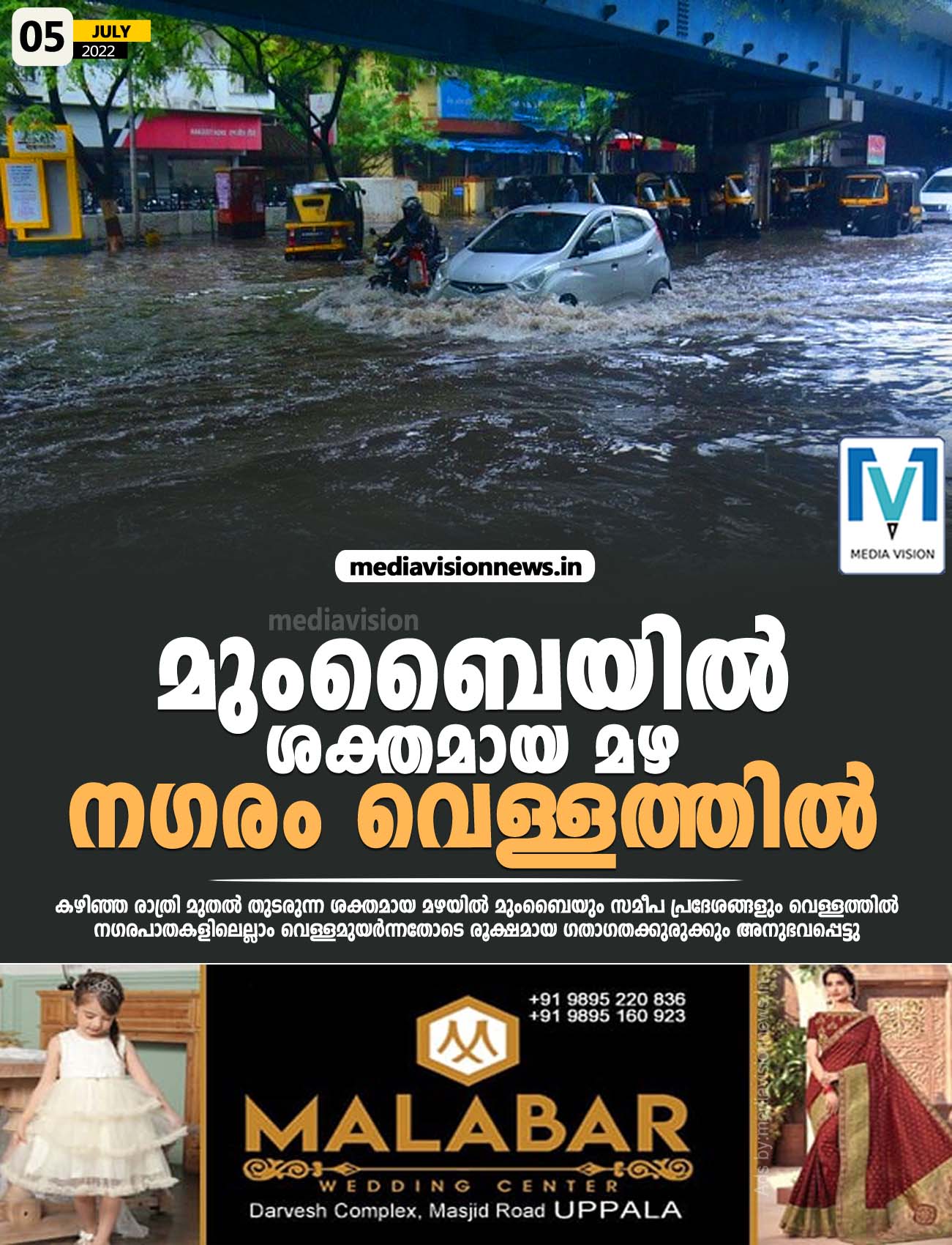 വെള്ളക്കെട്ടിനെ തുടര്ന്ന് അന്ധേരി സബ്വേ അടച്ചു. നവി മുംബൈ വഹാലിന് സമീപം ഉല്വ് റോഡുലും കനത്ത വെള്ളക്കെട്ടാണ്. പ്രാദേശിക ട്രെയിനുകള് വൈകിയാണ് ഓടുന്നത്. മുംബൈ- ഗോവ ദേശീയ പാതയില് മണ്ണിടിച്ചിലുമുണ്ടായി. ഇവിടേയും ഗതാഗതം തടസ്സപ്പെട്ടിരിക്കുകയാണ്. അമരാവതിയില് വെള്ളപ്പൊക്ക സമാനമായ അവസ്ഥയാണ്. കാന്തേശ്വര് റെയില്വേ സ്റ്റേഷനും വെള്ളത്തില് മുങ്ങിയിരിക്കുകയാണ്.