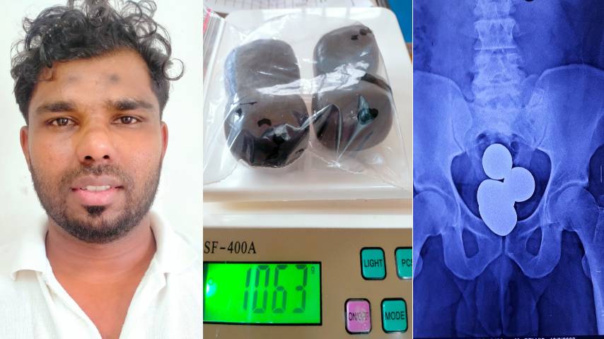 ആദ്യഘട്ട ചോദ്യം ചെയ്യലിൽ കുറ്റം സമ്മതിക്കാൻ നൗഫൽ വിസമ്മതിച്ചിരുന്നു. തുടർന്ന് ഇയാളുടെ ദേഹവും ലഗേജും പൊലീസ് വിശദമായി പരിശോധിച്ചു. എന്നാൽ സ്വർണം കണ്ടെടുക്കാനായില്ല. ഇതേത്തുടർന്ന് നൗഫലിനെ കൊണ്ടോട്ടിയിലെ സ്വകാര്യ ആശുപത്രിയിൽ എത്തിച്ച് വിശദമായ വൈദ്യപരിശോധനയ്ക്ക് വിധേയനാക്കി. എക്സ്റേയിൽ ഇയാളുടെ വയറിനുള്ളിൽ സ്വർണം അടങ്ങിയ നാല് കാപ്സ്യൂളുകൾ കണ്ടെത്തുകയായിരുന്നു. നൗഫലിനെ വിശദമായി ചോദ്യം ചെയ്ത് വരികയാണ്.