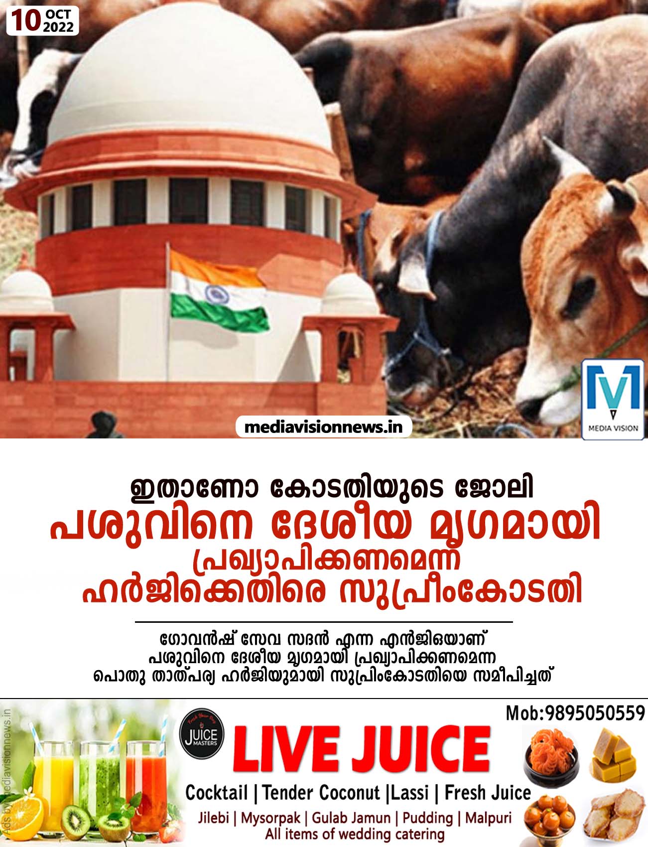 ഗോവന്ഷ് സേവ സദന് എന്ന എന്ജിഒയാണ് പശുവിനെ ദേശീയ മൃഗമായി പ്രഖ്യാപിക്കണമെന്ന പൊതു താത്പര്യ ഹര്ജിയുമായി സുപ്രിംകോടതിയെ സമീപിച്ചത്.