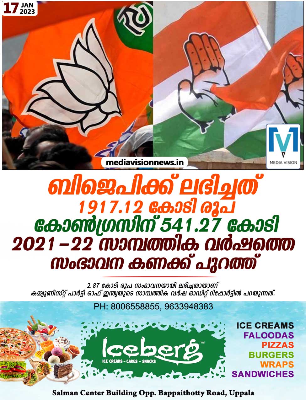 ന്യൂഡല്ഹി: രാഷ്ട്രീയ പാര്ട്ടികള്ക്ക് 2021-2022 സാമ്പത്തിക വര്ഷത്തില് ലഭിച്ച സംഭാവനകളുടെ കണക്ക് പുറത്ത്. കേന്ദ്ര ഭരണ പാര്ട്ടിയായ ബിജെപിക്ക് 1917.12 കോടി രൂപയാണ് സംഭാവനയായി ലഭിച്ചത്. ഇതില് 1033.7 കോടി രൂപ ഇലക്ടറല് ബോണ്ട് വഴിയാണ് ലഭിച്ചത്. 854.46 കോടി രൂപയാണ് സാമ്പത്തിക വര്ഷത്തില് പാര്ട്ടി ചെലവഴിച്ചത്.