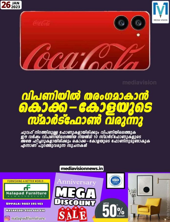 ഡൽഹി: ലോകപ്രശസ്ത ശീതളപാനീയ നിർമ്മാതാക്കളായ കൊക്ക-കോള സ്മാർട്‌ഫോൺ വിപണിയിലേക്കും. ഈ വർഷം പകുതിയോടെ കൊക്ക-കോള പുതിയ സ്മാർട്‌ഫോൺ ഇന്ത്യൻ വിപണിയിലെത്തിക്കുമെന്നാണ് പുറത്തുവരുന്ന റിപ്പോർട്ടുകൾ.