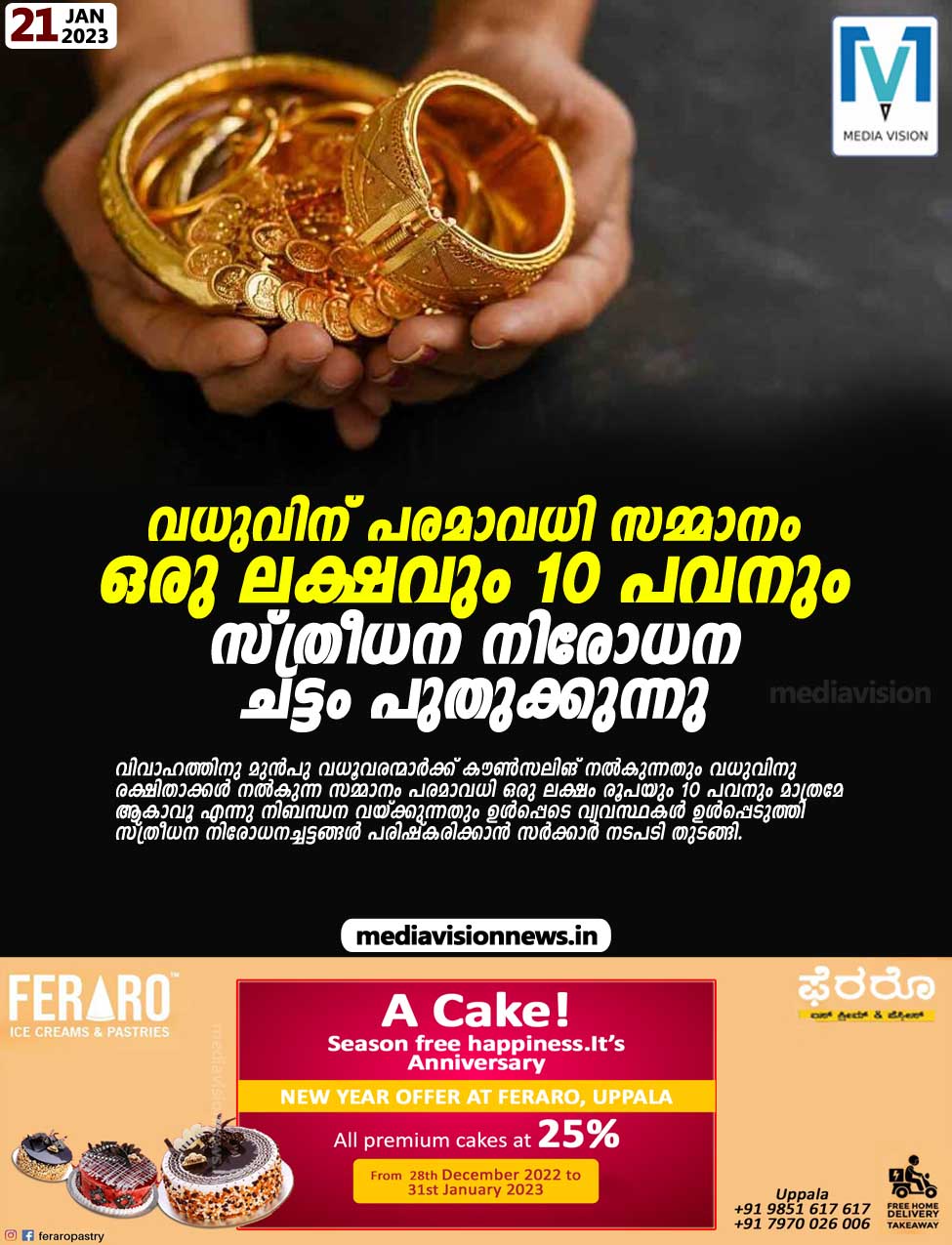 ∙ വധുവിനു നൽകുന്ന മറ്റു സാധനങ്ങൾ 25,000 രൂപയിൽ കൂടാൻ പാടില്ല.