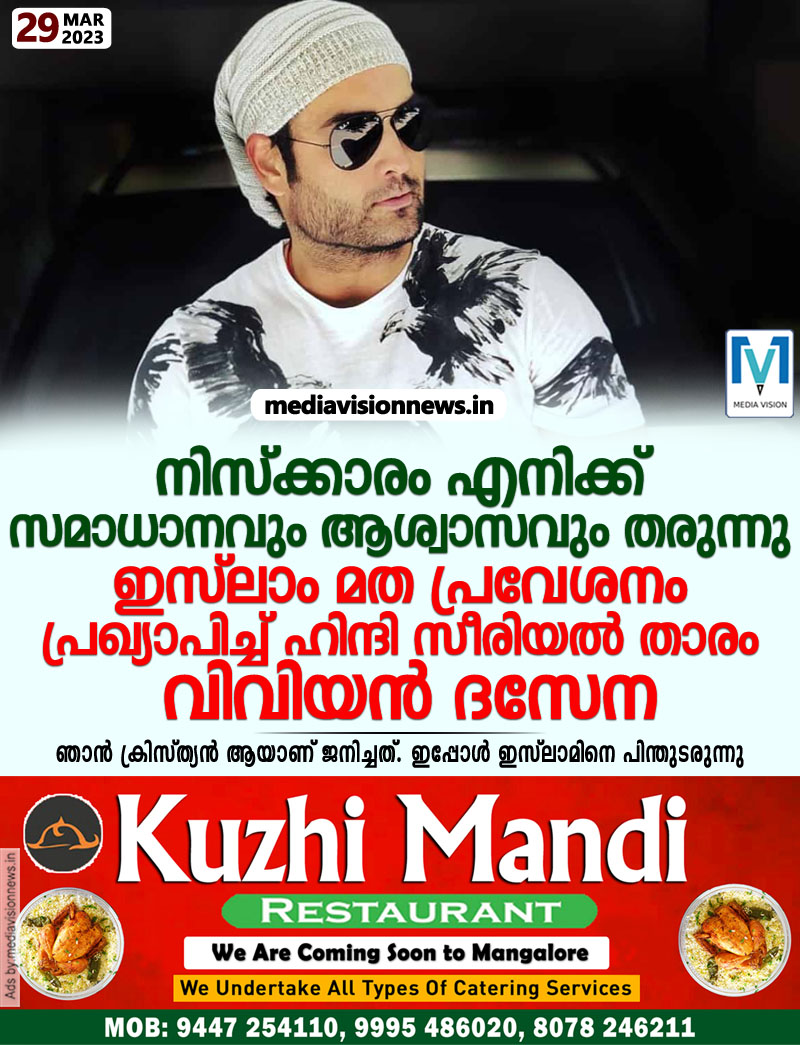 മുംബൈ: തന്റെ ഇസ്ലാം മത പ്രവേശനം പ്രഖ്യാപിച്ച് ഹിന്ദി സീരിയല് നടന് വിവിയന് ദസേന. 2019ലെ റമദാനില് താന് ഇസ്ലാം സ്വീകരിച്ചിട്ടുണ്ടെന്നാണ് താരം പ്രഖ്യാപിച്ചത്.
