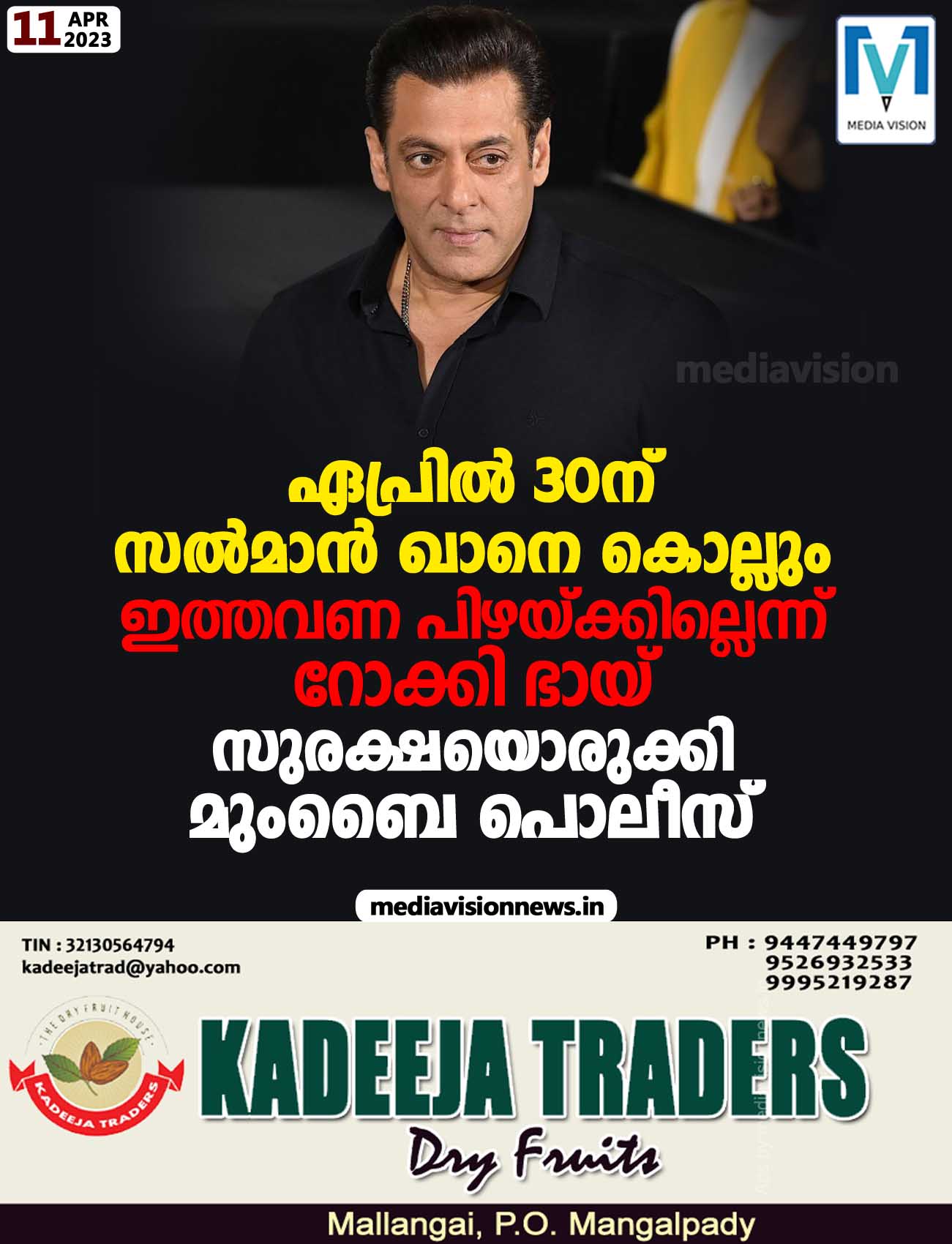 സംഭവത്തില് പൊലീസ് അന്വേഷണം ആരംഭിച്ചിരിക്കുകയാണ്. അടുത്തകാലത്തായി മൂന്നിലധികം തവണയാണ് നടന് നേരെ വധഭീഷണിയുണ്ടായത്. കഴിഞ്ഞ മാസം താരത്തിനെതിരെ ഭീഷണി സന്ദേശം ലഭിച്ചിരുന്നു. ഭീഷണികള് കൂടിയതോടെ സുരക്ഷ മുന്നിര്ത്തി പുതിയ വാഹനം നിസാന് പട്രോള് എസ് യു വി സല്മാന് ഇറക്കുമതി ചെയ്തിരുന്നു.