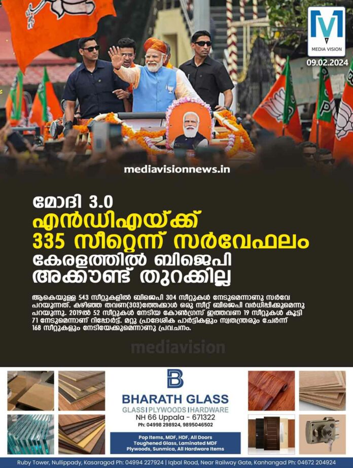 കേരളത്തിൽ ബിജെപി ഇത്തവണയും അക്കൗണ്ട് തുറക്കില്ലെന്നാണു സർവേ ഫലം. ‘ഇന്ത്യ’ മുന്നണി കേരളത്തിലെ 20 ലോക്സഭ സീറ്റുകളും സ്വന്തമാക്കുമെന്നും പറയുന്നു. എന്നാൽ കഴിഞ്ഞ തവണ 83 ശതമാനമാണ് ഇന്ത്യ മുന്നണിയിലെ പാർട്ടികളുടെ വോട്ട് ശതമാനമെങ്കിൽ ഇത്തവണ അത് 78 ശതമാനമായി കുറയും. എൻഡിഎയുടെ വോട്ട് ശതമാനം 15 ശതമാനത്തിൽനിന്ന് 17 ശതമാനമായി ഉയരും.