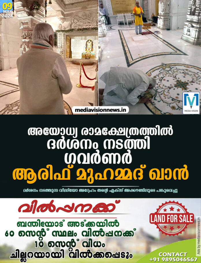 Hon'ble Governor Shri Arif Mohammed Khan at Prabhu Shri Ram Temple Ayodhya: PRO KeralaRajBhavan pic.twitter.com/wCzZCSirLt