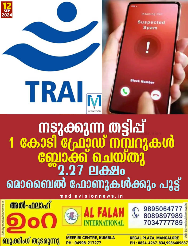ടെലികോം ഉപഭോക്താക്കള്ക്ക് സുരക്ഷിതമായ സേവനം ഒരുക്കുന്നതിന്റെ ഭാഗമായാണ് ടെലികോം മന്ത്രാലയവും ട്രായ്യും ചേര്ന്ന് ശക്തമായ നടപടികള് കൈക്കൊള്ളുന്നത്. സ്പാം രഹിത ടെലികോം സേവനവും വേഗതയാര്ന്ന ഇന്റര്നെറ്റും മൊബൈലില് ലഭ്യമാക്കുകയാണ് ഇതിലൂടെ ലക്ഷ്യമിടുന്നത്. സ്പാം കോളുകള്ക്കായി ഉപയോഗിക്കുന്ന 3.5 ലക്ഷത്തിലധികം ഫോണ് നമ്പറുകൾ വിച്ഛേദിക്കുകയും 50 സ്ഥാപനങ്ങളെ കരിമ്പട്ടികയിൽ പെടുത്തുകയും ചെയ്തു. സഞ്ചാര് സാഥിയുടെ സഹായത്തോടെ ഒരു കോടിയിലധികം തട്ടിപ്പ് മൊബൈൽ കണക്ഷനുകൾ വിച്ഛേദിച്ചതായും പിഐബിയുടെ വാര്ത്താക്കുറിപ്പില് പറയുന്നു. സൈബര് കുറ്റകൃത്യങ്ങളും സാമ്പത്തിക തട്ടിപ്പുമായി ബന്ധപ്പെട്ട 2.27 ലക്ഷം മൊബൈല് ഫോണുകള് ബ്ലോക്ക് ചെയ്തിട്ടുമുണ്ട്.