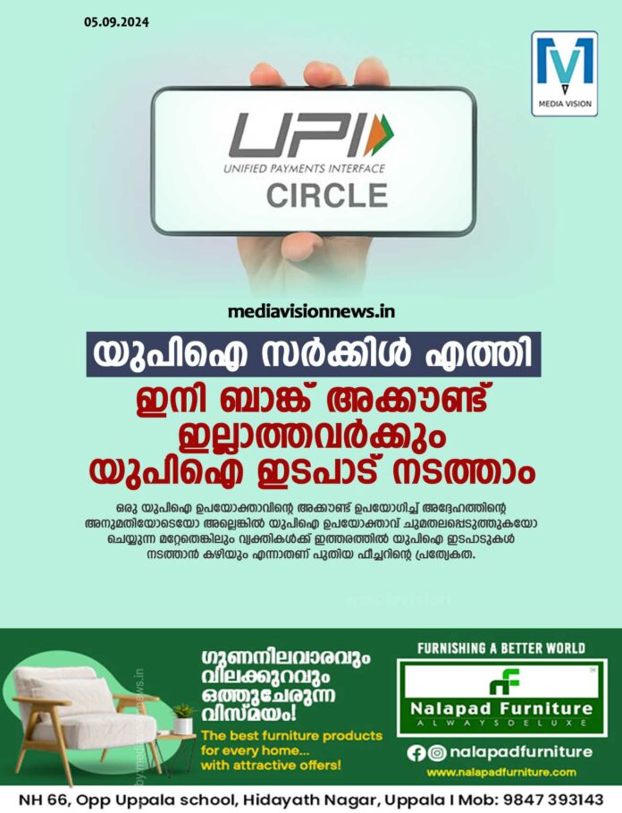 ഡൽഹി: ഡിജിറ്റൽ പേയ്മെന്റുകൾ വർധിപ്പിക്കുന്നതിനായി പുതിയ ഫീച്ചർ അവതരിപ്പിച്ചിരിക്കുകയാണ് നാഷണൽ പേയ്മെന്റ് കോർപ്പറേഷൻ ഓഫ് ഇന്ത്യ. ബാങ്ക് അക്കൗണ്ട് ഇല്ലാത്തവർക്കും യുപിഐ ഇടപാട് നടത്താൻ കഴിയുന്ന യുപിഐ സർക്കിൾ എന്ന പുതിയ ഫീച്ചറാണ് ഇപ്പോൾ ചർച്ചയാകുന്നത്.