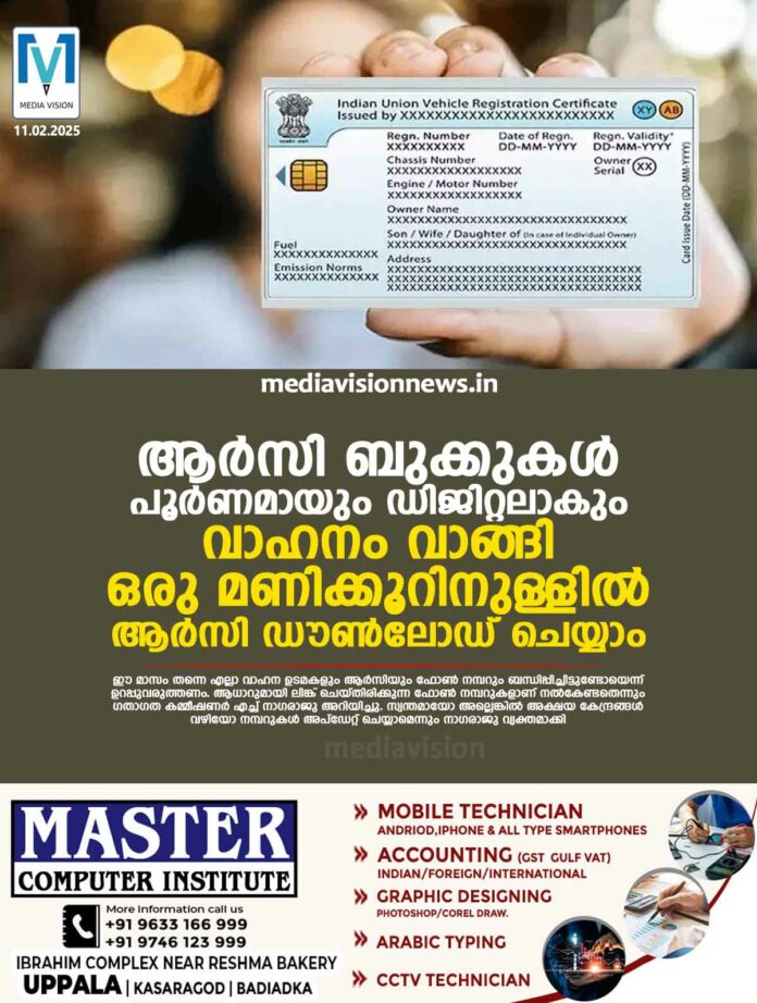 സ്വന്തമായോ അല്ലെങ്കില് അക്ഷയ കേന്ദ്രങ്ങള് വഴിയോ നമ്പറുകള് അപ്ഡേറ്റ് ചെയ്യാമെന്നും നാഗരാജു വ്യക്തമാക്കി. വാഹനം വാങ്ങി ഒരു മണിക്കൂറിനുള്ളില് തന്നെ പരിവാഹന് വാഹന് വെബ്സൈറ്റില് നിന്ന് ആര്സി ഡൗണ്ലോഡ് ചെയ്യാന് സാധിക്കും.
