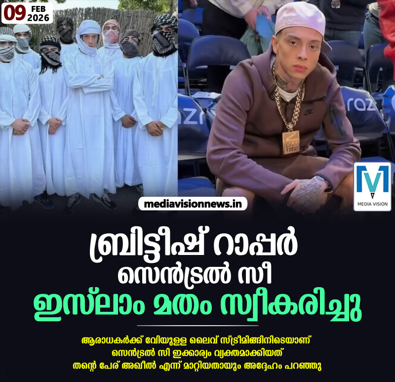 ലണ്ടന്: ഇസ്ലാം മതം സ്വീകരിച്ചതായി പ്രഖ്യാപിച്ച് പ്രശസ്ത ബ്രിട്ടീഷ് റാപ്പര് സെൻട്രൽ സീ. ആരാധകര്ക്ക് വേണ്ടിയുള്ള ലൈവ് സ്ട്രീമിങ്ങിനിടെയാണ് സെന്ട്രല് സി ഇക്കാര്യം വ്യക്തമാക്കിയത്. തന്റെ പേര് അഖീൽ എന്ന് മാറ്റിയതായും അദ്ദേഹം പറഞ്ഞു.