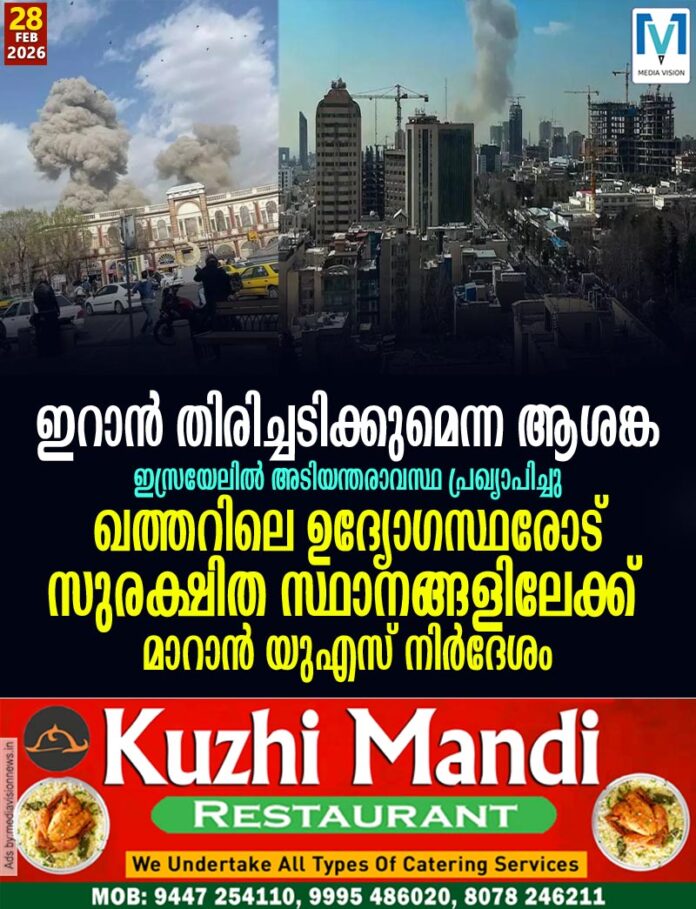 ഇറാൻ തിരിച്ചടിക്കുമെന്ന ആശങ്ക; ഇസ്രയേലിൽ അടിയന്തരാവസ്ഥ പ്രഖ്യാപിച്ചു, ഖത്തറിലെ ഉദ്യോഗസ്ഥരോട് സുരക്ഷിത സ്ഥാനങ്ങളിലേക്ക് മാറാൻ യുഎസ് നിർദേശം