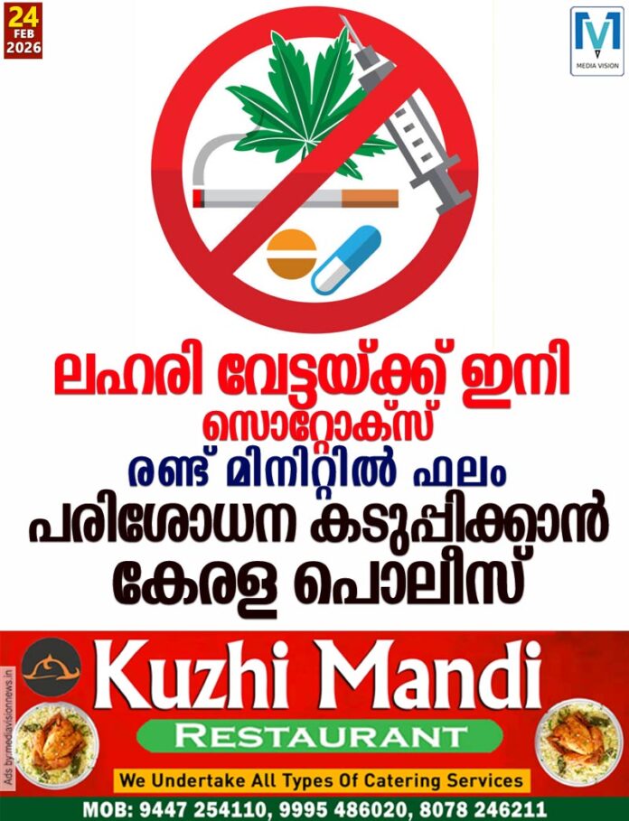 മദ്യപാനം കണ്ടെത്താൻ ബ്രെത്തലൈസർ ഉപയോഗിക്കുന്നത് പോലെ, വാഹന പരിശോധനയ്ക്കിടെ സംശയം തോന്നുന്നവരെ ഉടനടി ഈ കിറ്റ് ഉപയോഗിച്ച് പരിശോധിക്കാൻ സാധിക്കും. സംസ്ഥാനത്തുടനീളം ഡി-ഹണ്ട് ഓപ്പറേഷൻ ശക്തമായി തുടരുകയാണ്. പ്രതിദിനം ശരാശരി 1,100 മുതൽ 1,300 വരെ ആളുകളെ പരിശോധിക്കുന്നുണ്ടെന്നും ഇതിൽ 75 മുതൽ 90 വരെ പേർ അറസ്റ്റിലാകുന്നുണ്ടെന്നും പൊലീസ് കണക്കുകൾ വ്യക്തമാക്കുന്നു.