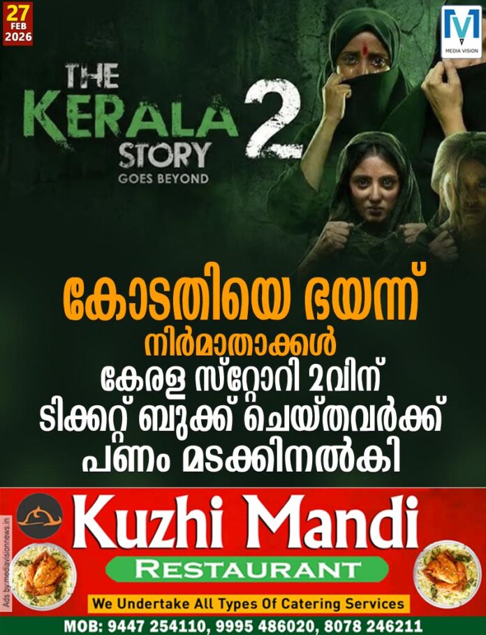 കോടതിയെ ഭയന്ന് നിർമാതാക്കൾ; കേരള സ്റ്റോറി 2വിന് ടിക്കറ്റ് ബുക്ക് ചെയ്തവർക്ക് പണം മടക്കിനൽകി