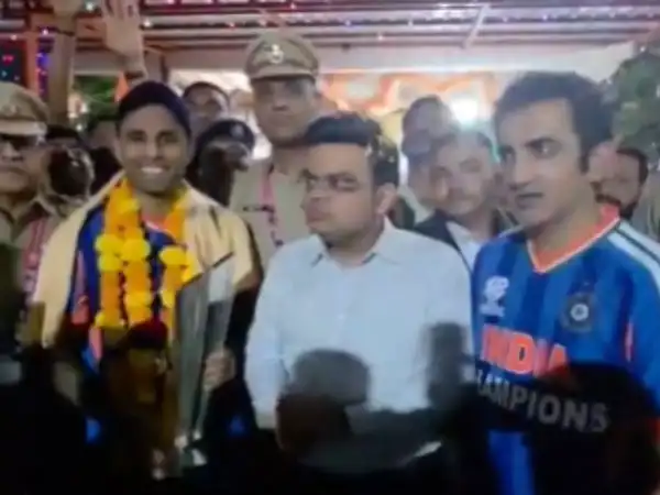 ടി20 ലോകകപ്പിൽ ചരിത്രവിജയം കുറിച്ചതിന് പിന്നാലെ അഹമ്മദാബാദിലെ പ്രസിദ്ധമായ ഹനുമാൻ ക്ഷേത്രത്തിൽ ദർശനം നടത്തി ഇന്ത്യൻ ടീം . ലോകകപ്പ് കിരീടവുമായാണ് ക്യാപ്റ്റൻ സൂര്യകുമാർ യാദവ്, മുഖ്യ പരിശീലകൻ ഗൗതം ഗംഭീർ, ഐസിസി ചെയർമാൻ ജയ് ഷാ എന്നിവർ ക്ഷേത്രത്തിലെത്തി അനുഗ്രഹം തേടിയത്.