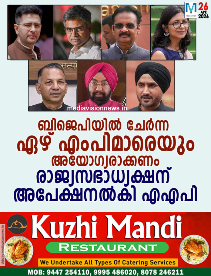 ന്യൂഡൽഹി: ബിജെപിയിൽ ചേർന്ന ഏഴ് എംപിമാരെയും അയോഗ്യരാക്കണമെന്ന് ആവശ്യപ്പെട്ട് രാജ്യസഭാ ചെയർമാൻ സി.പി. രാധാകൃഷ്ണന് അപേക്ഷ നൽകി എഎപി. പാർട്ടിയുടെ മുതിർന്ന നേതാവും എംപിയുമായ സഞ്ജയ് സിങ്ങാണ് ഞായറാഴ്ച കത്ത് കൈമാറിയത്. ഏഴ് എംപിമാരുടെ നീക്കത്തിലൂടെ ഉണ്ടായിരിക്കുന്നത് കൂറുമാറ്റ നിരോധന നിയമത്തിന്റെ വ്യക്തമായ ലംഘനമാണെന്ന് സിങ് വാർത്താസമ്മേളനത്തിൽ ആരോപിച്ചു.