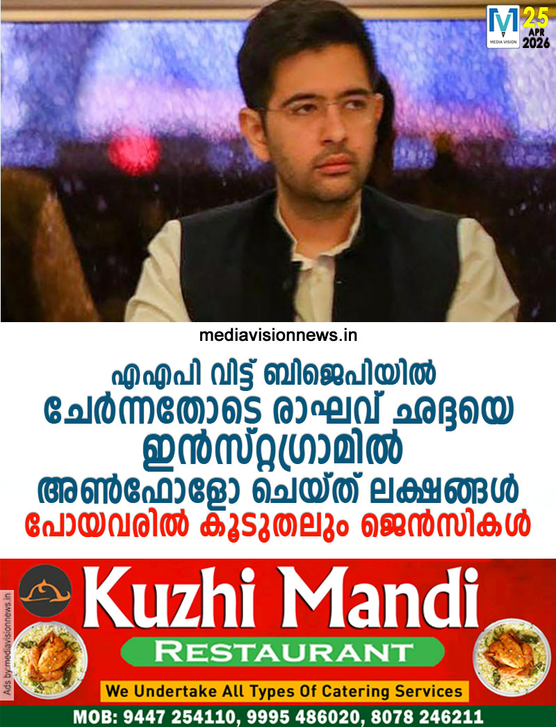 എഎപി വിട്ട് ബിജെപിയിൽ ചേർന്നതോടെ രാഘവ് ഛദ്ദയെ ഇൻസ്റ്റഗ്രാമിൽ അൺഫോളോ ചെയ്ത് ലക്ഷങ്ങൾ; പോയവരിൽ കൂടുതലും ജെന്‍സികൾ