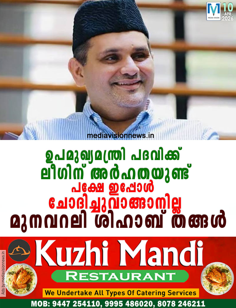 ഉപമുഖ്യമന്ത്രി പദവിക്ക് ലീഗിന് അർഹതയുണ്ട്, പക്ഷേ ഇപ്പോൾ ചോദിച്ചുവാങ്ങാനില്ല -മുനവറലി ശിഹാബ് തങ്ങൾ